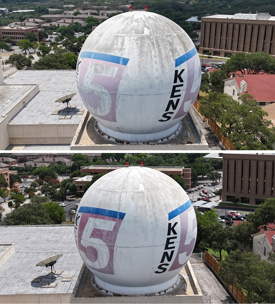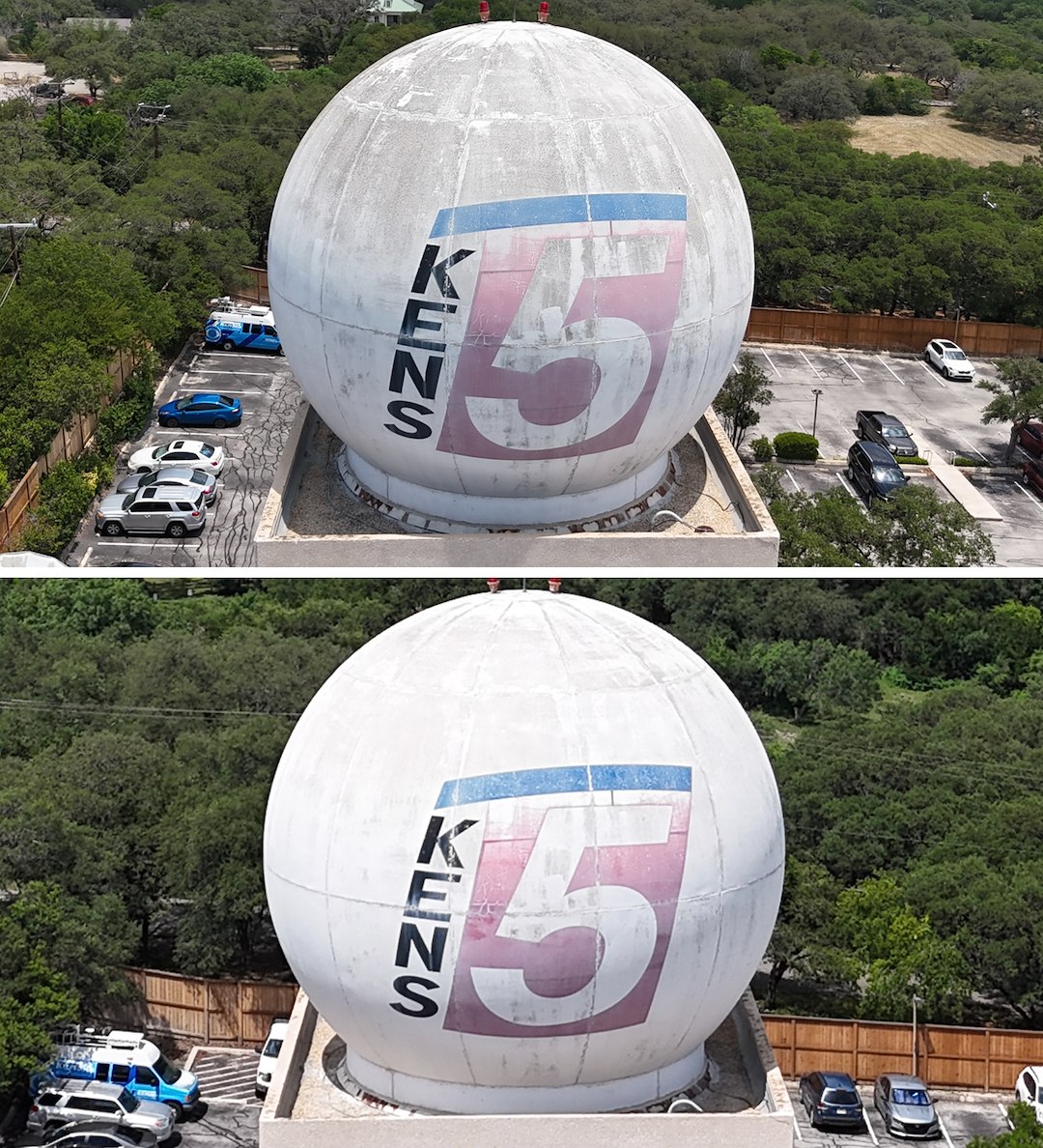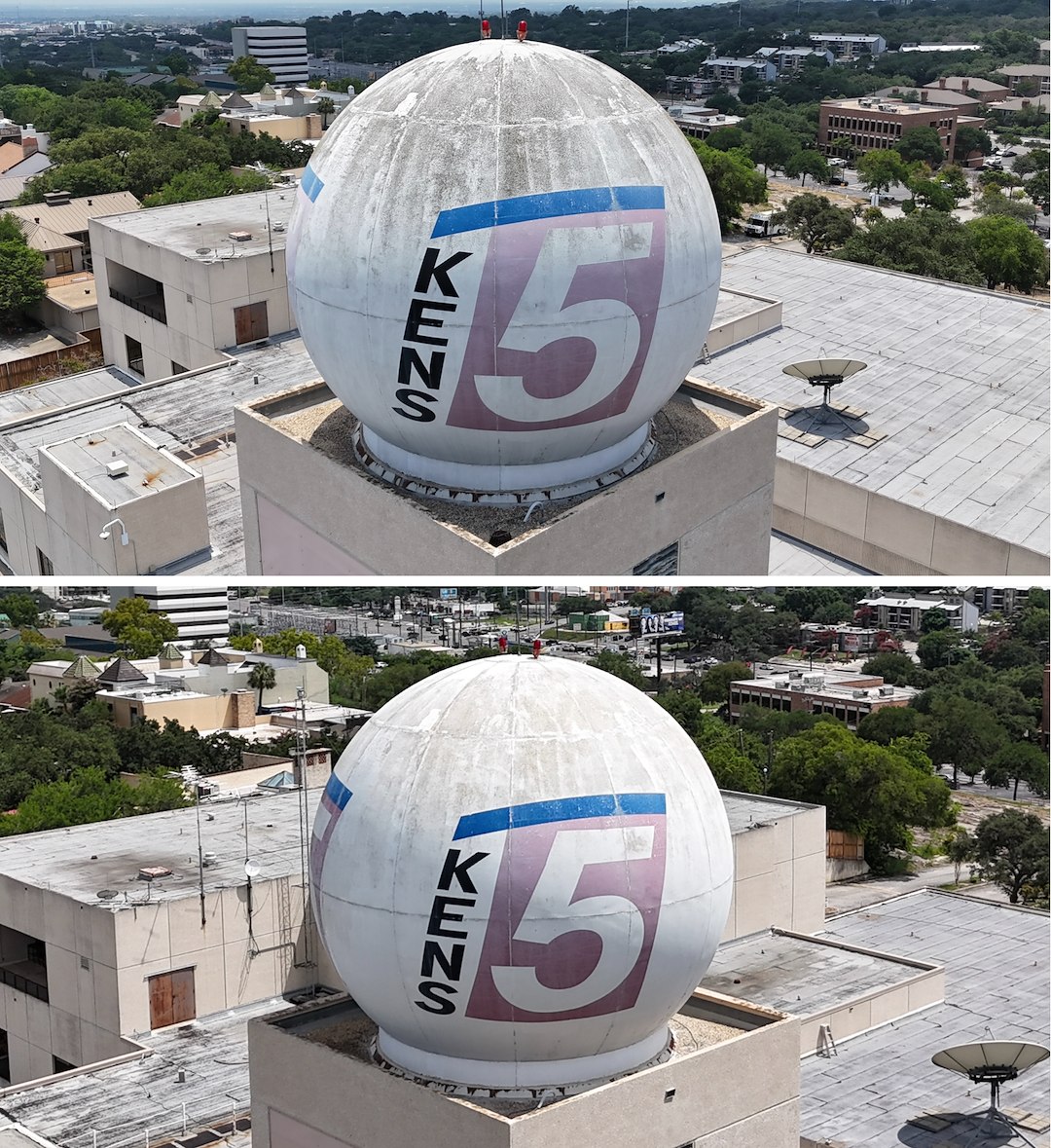 My Station Manager tasked me with cleaning our over 40 year old iconic KENS5 Doppler radar dome and wanted to keep costs within budget. After some research, traditional methods were not within our budget so I was thrilled when I found Drone Washing Solutions online! Sameer was very professional and easy to work with throughout the process. On the day of, Sameer and his team showed up early and said it would take about half a day. They were done in about 2.5 hours! We were blown away with the results, even the paint looks brighter! I would definitely recommend Drone Washing Solutions for your challenging cleaning projects.
