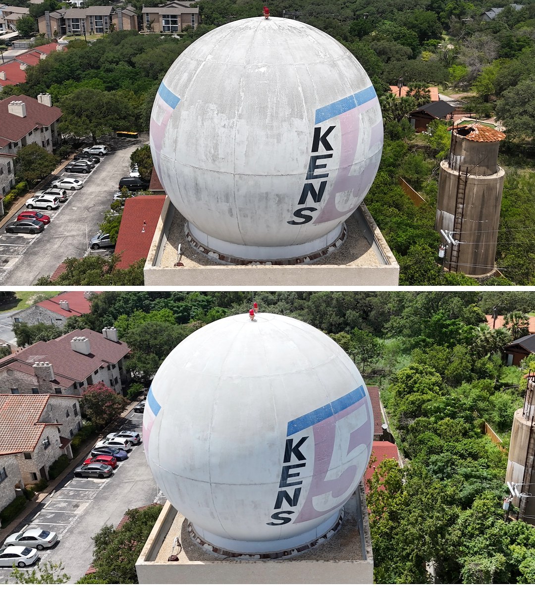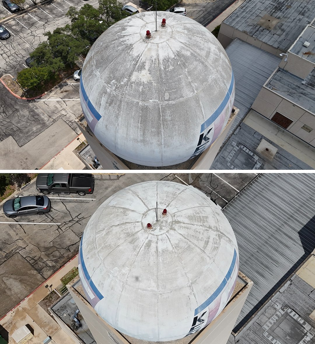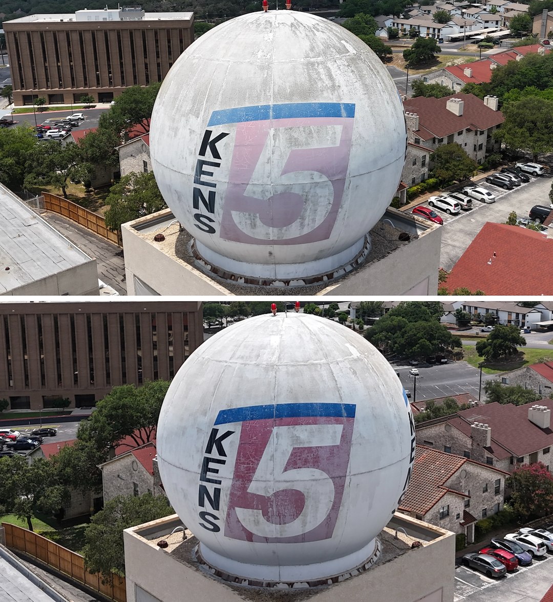 My Station Manager tasked me with cleaning our over 40 year old iconic KENS5 Doppler radar dome and wanted to keep costs within budget. After some research, traditional methods were not within our budget so I was thrilled when I found Drone Washing Solutions online! Sameer was very professional and easy to work with throughout the process. On the day of, Sameer and his team showed up early and said it would take about half a day. They were done in about 2.5 hours! We were blown away with the results, even the paint looks brighter! I would definitely recommend Drone Washing Solutions for your challenging cleaning projects.